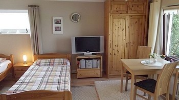 Wir heißen Sie willkommen in unserem gemütlichen Nichtraucher-Apartement für 2 Personen, ebenerdig, hell und modern ausgestattet. Unser liebevoll eingerichtetes, neu renoviertes Apartement befindet sich in einem ruhigen Wohngebiet am Stadtrand (Stadtteil Borby). Der gemütliche Wohn-/ Schlafraum verfügt über 2 Einzelbetten, Parkettboden, Flachbildfernseher mit DVD-Player, Radio. Die kleine aber feine Pantryküche ist vollständig ausgestattet. Das kleine, modern ausgestattete WC mit Fenster ist von der Dusche getrennt. Wenn Sie möchten, stehen Ihnen Gartenmöbel und ein Grill für Ihren Aufenthalt auf unserer kleinen Terrasse zur Verfügung. Eine Parkmöglichkeit finden Sie direkt am Haus. Fahrräder können untergestellt werden. Den schönen Hafen von Eckernförde sowie den Borbyer Strand erreichen Sie in 10 Gehminuten. Bis zur Innenstadt und zum schönen Kurstrand gehen Sie 20 Minuten.